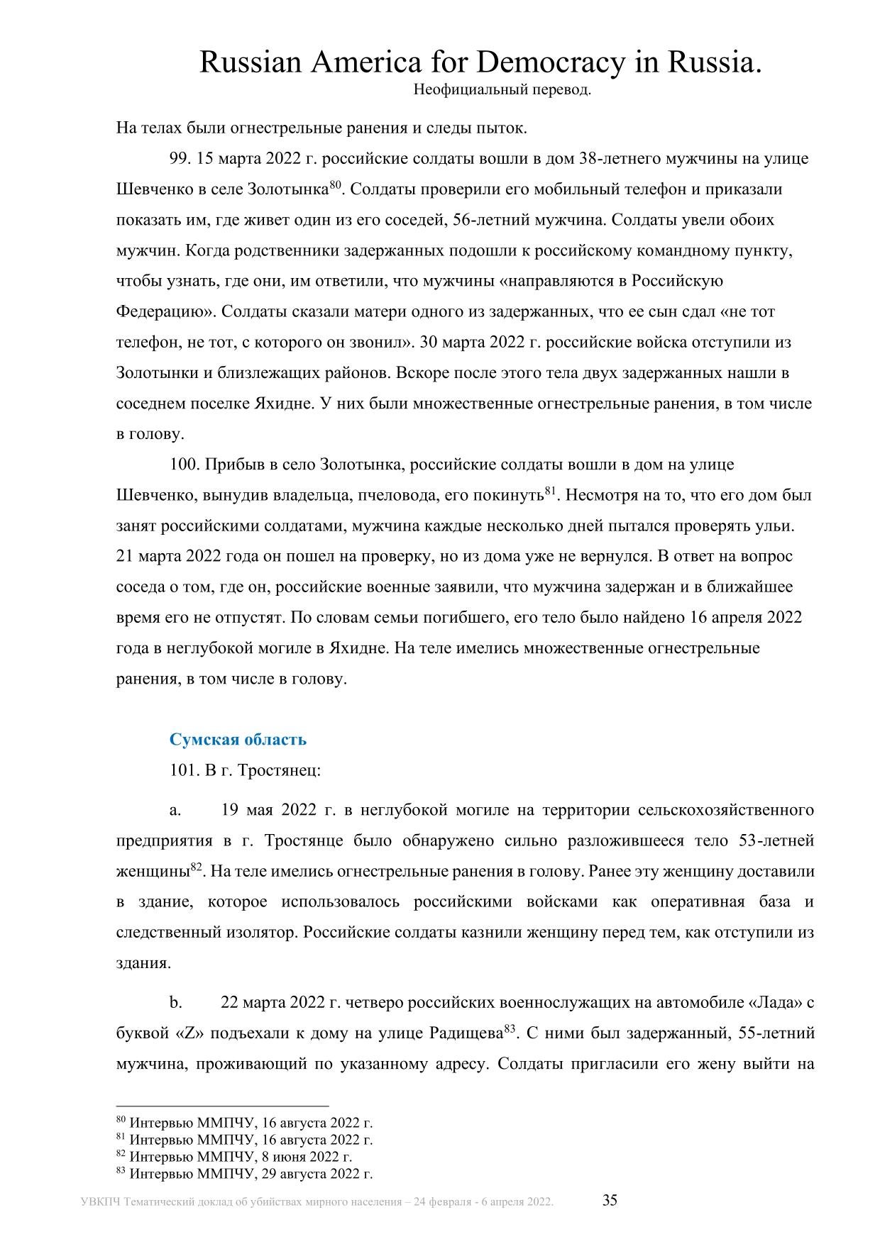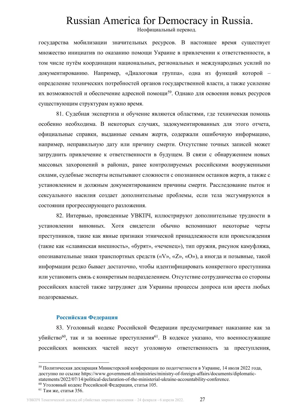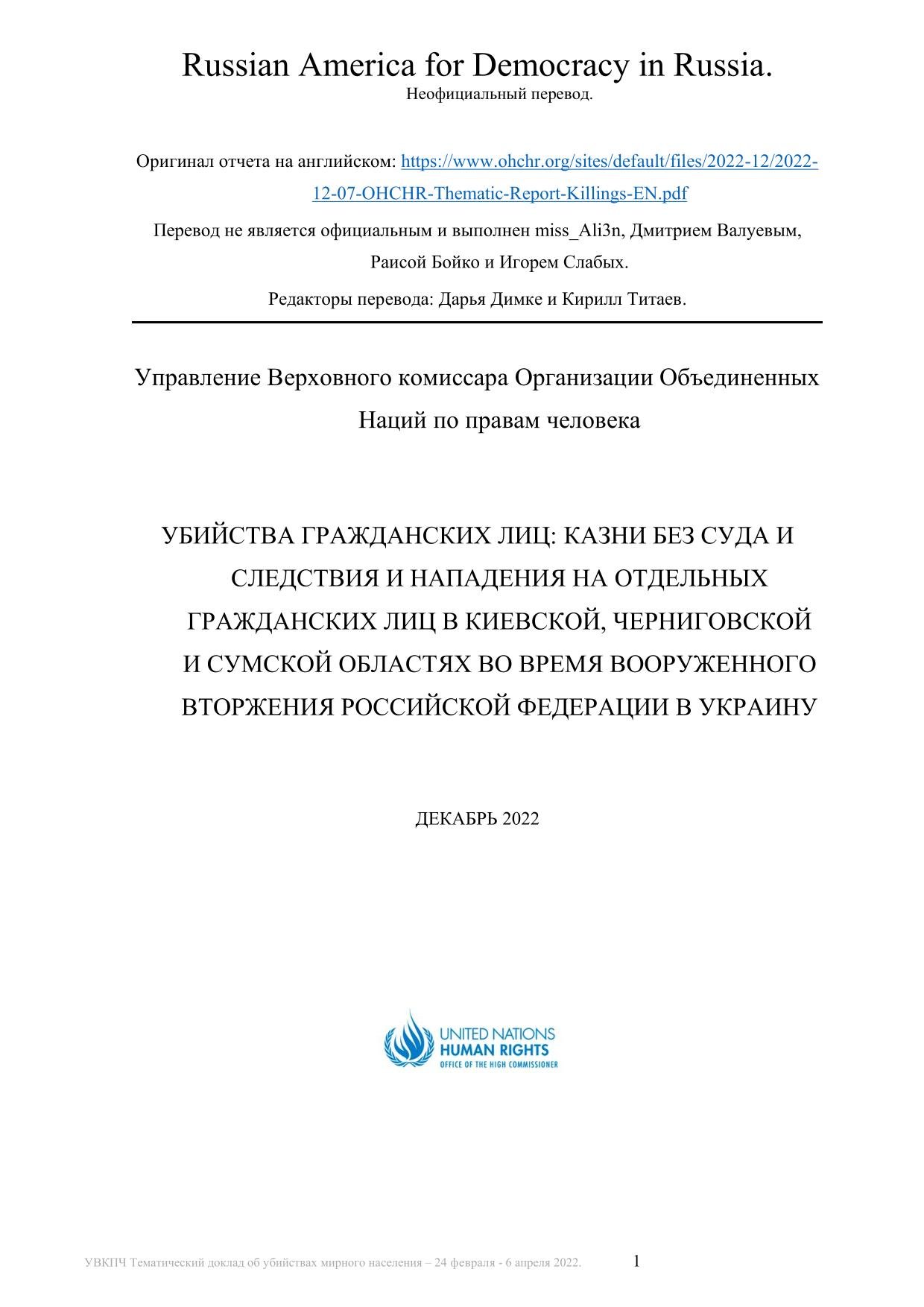 Буча и другие преступления: официальный доклад ООН на русском языке
