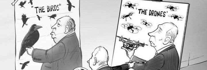 Путин рисует постер к фильму Хичкока «Птицы». Вместо этого он использует «Дроны»…