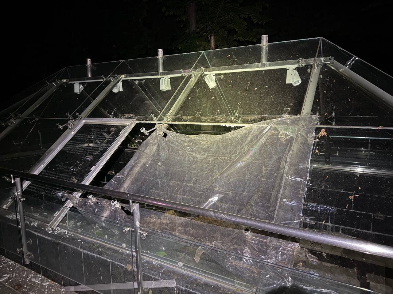 Вылетели стёкла в гостинице, бывшей Лондонской, да и не только. В сети полно фото бульвара, усыпанного осколками стекла и стали и листвой.
