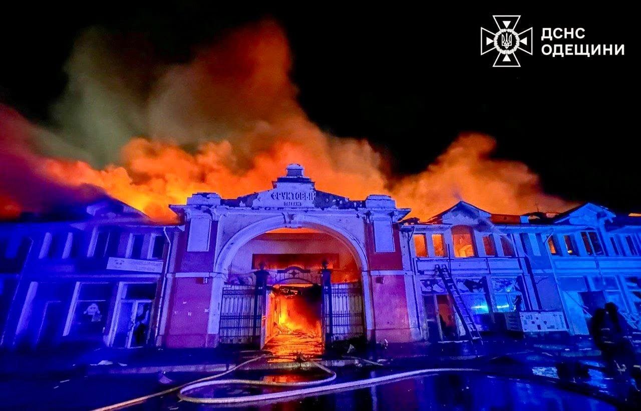 На фото – горящий Привоз. Красивый, отремонтированный, родной для одесситов. Надеюсь, ночью там никого не было.