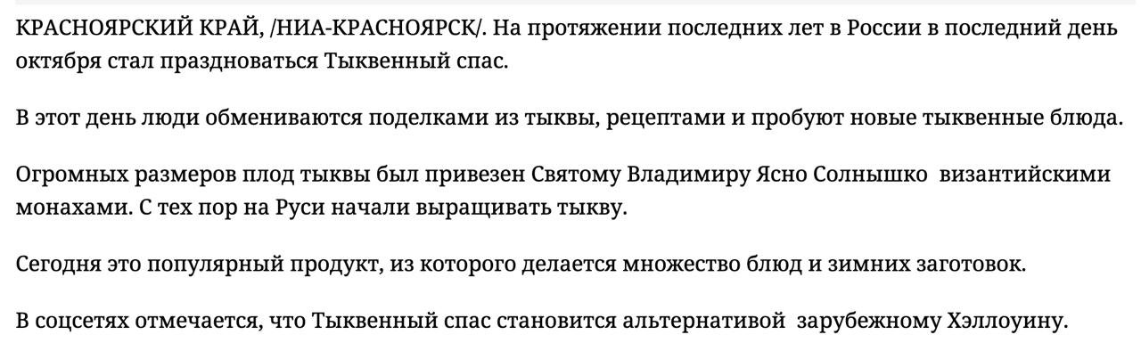 Импортозамещение праздников набирает обороты. С 2023 местами запрещают Хэллоуин, а вместо них устраивают Тыквенный Спас, либо Велесову Ночь, либо обмен книгами.