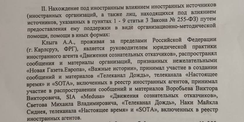 Иными словами, вся «организационно-методическая помощь» и помощь «в иных формах» заключается в том, что я живу за пределами России, занимал должность в организации, признанной иностранным агентом, а также распространял материалы иноагентов и нежелательных организаций.