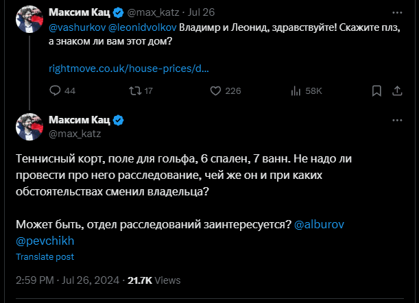 Началось все примерно с этого твита Максима Каца и ссылки на сайт объявлений про британскую недвигу.