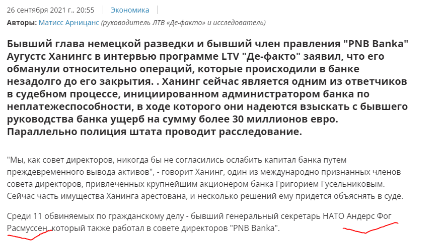 С 90-х в Латвии существовал банк, сначала он назывался Norvik, потом PNB Banka. Я мало что о нем знаю: им владел российский бизнесмен Гусельников, около 2019 года у банка начались проблемы, в сентябре он прекратил обслуживание клиентов.
