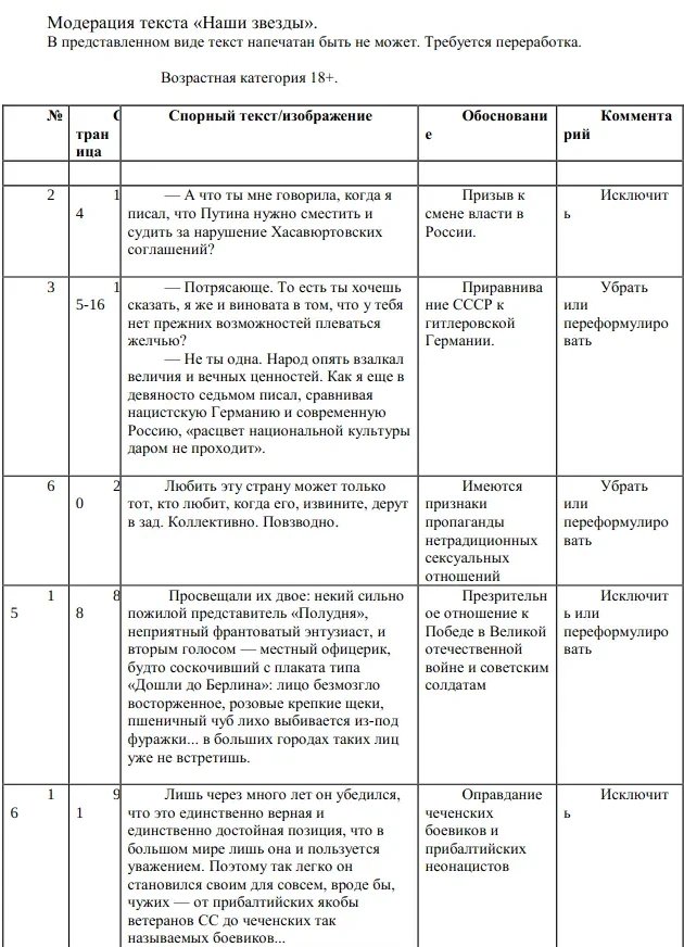 Во-первых, советую всем писателям внимательно изучить список цензорских претензий и сделать для себя выводы, какие фразы не нужно употреблять в своих современных книжках даже устами отрицательных персонажей и нацпредателей.