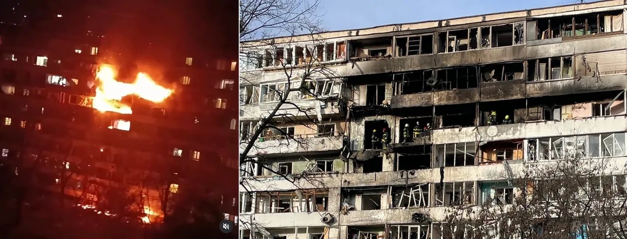 Так горела девятиэтажка в Киеве на Русановке в ночь на 25 ноября. Новостные ленты пишут, что в центр девятиэтажки ударил дрон российского производства «Герань», бывший иранский «Шахед», погибло 2 мирных жителя.