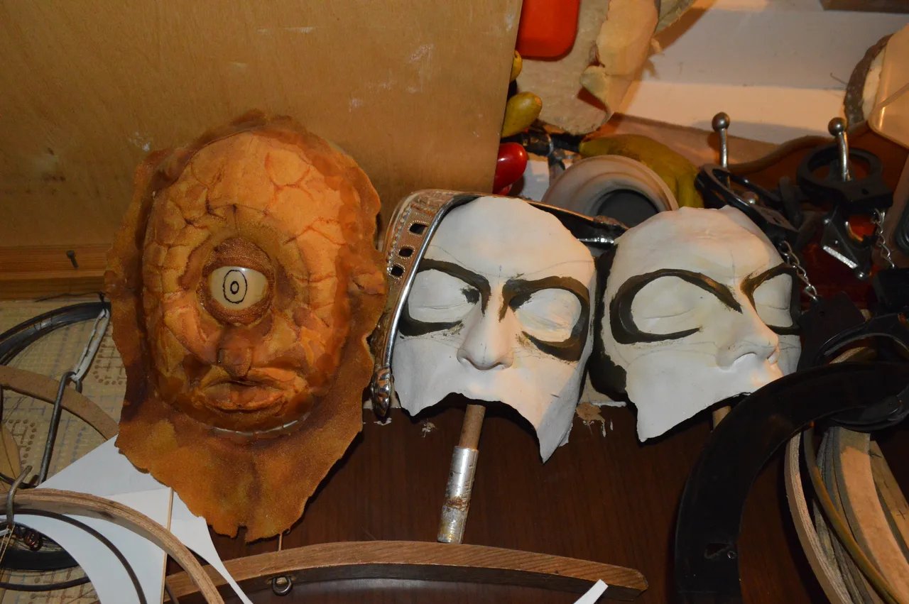 Макет был раскладной — он распахивался, давая возможность изучать состояние бешено фонящей станции и снаружи, и изнутри. Долгие годы потом макет стоял в пресс-центре Чернобыльской станции как бесценный экспонат. Но чаще Вадим работал именно с художественными декорациями. Отдельной его страстью было изготовление масок — масок в его квартире было огромное количество, и самых фантастических.