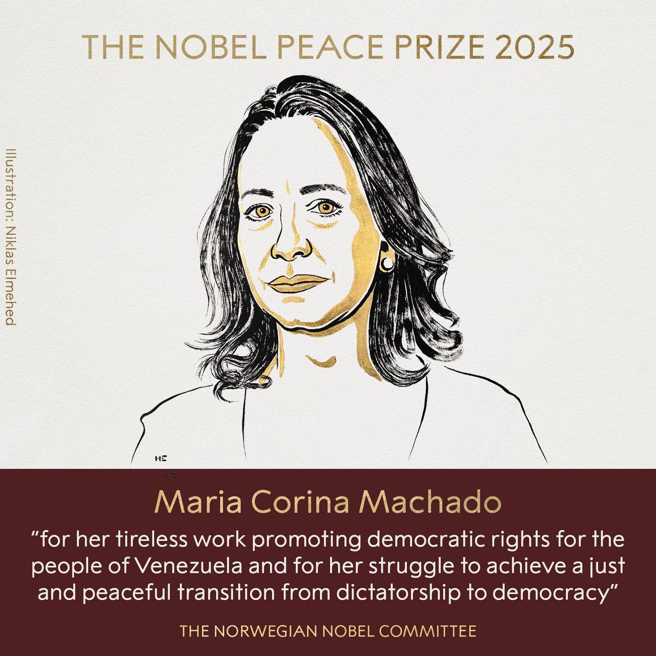 В комитете подчеркнули, что Мачадо отвечает всем трём критериям Альфреда Нобеля — она сумела объединить оппозицию, не поддалась милитаризации венесуэльского общества и добивается мирного перехода к демократии. Мачадо посвятила награду «страдающему народу Венесуэлы и президенту Дональду Трампу за его поддержку».