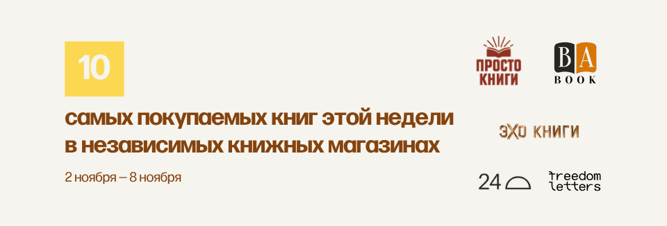 В этом рейтинге — результаты магазинов «Эхо Книги», «Просто Книги», BAbook, Freedom Letters, «Муравей»