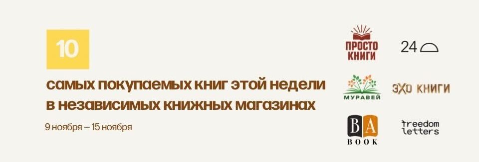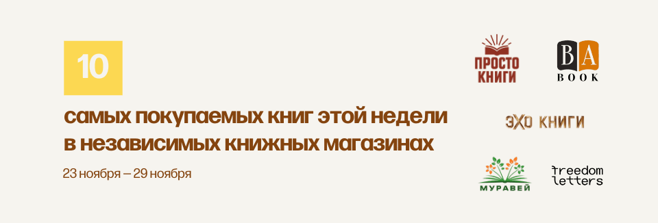 В этом рейтинге — результаты магазинов «Эхо Книги», «Просто Книги», «Бабук», Freedom Letters, «Платформа 24», «Муравей»…
