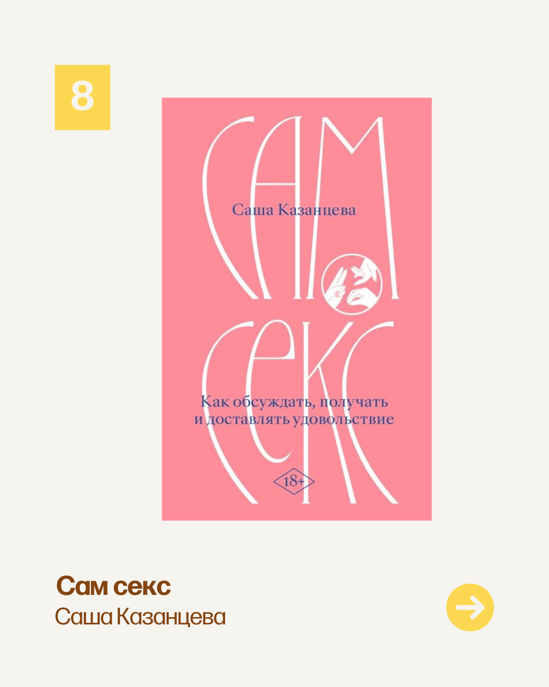 Когда дело доходит до секса, все порой чувствуют себя неловко: мы не хотим показаться несведущими, неуверенными в себе, боимся, что нас не примут, не поймут или просто что будет «не очень». Даже обсудить что к чему с партнерами не всегда хватает смелости. Но почему мы так стесняемся говорить о сексе? Откуда берутся сексуальные фантазии, как они помогают нам и можно ли делить их на «нормальные» и «странные»? Что значат все эти незнакомые слова — «раббинг», «тоинг», «комперсия» и какие практики за ними стоят? Как доставить удовольствие себе и другому человеку? И как понять, чего хочется нам самим? В своей книге секс-просветительница и писательница Саша Казанцева подробно отвечает на эти и десятки других вопросов.