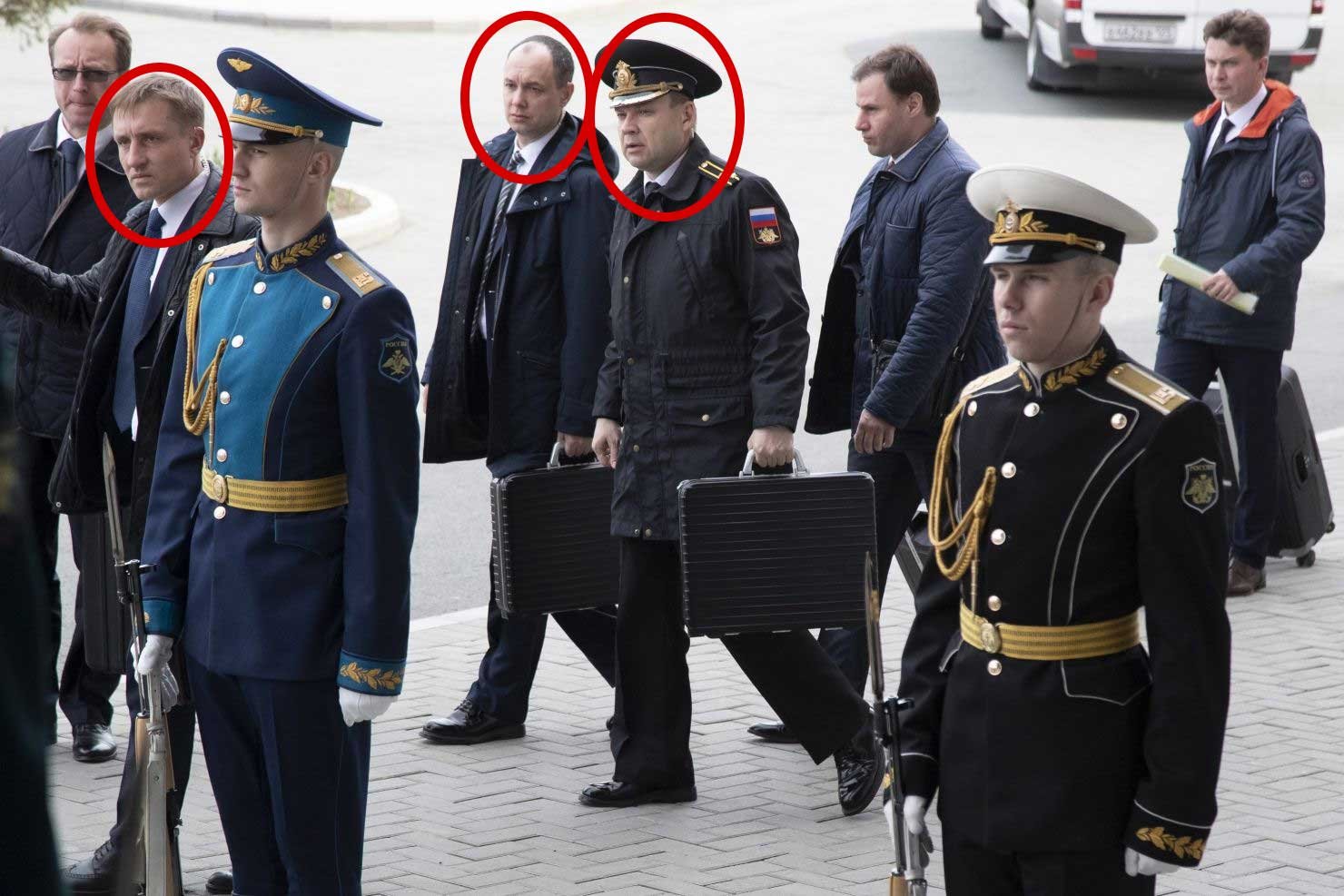 Непосредственный командир войсковой части 26299 — полковник Андрей Журавлев. В прошлом он и сам заступал на боевые дежурства и, например, сопровождал Путина в декабре 2016 года в ходе визита в Японию. Остальные военнослужащие занимают должности офицеров-операторов, они разбиты на группы примерно по 10 человек, у каждой — свой начальник. Имена двух из них «Досье» сумел установить — это Сергей Ветошкин и Сергей Хаперский.