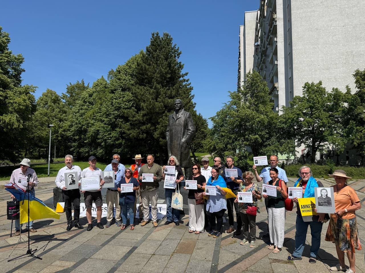 Жарким субботним днем 14 июня рядом с Лениным начали собираться люди. Митинг был организован с немецкой основательностью: хотя в акции в итоге приняли участие лишь около 30 человек, выступающих обеспечили микрофонами, а рядовых участников — небольшими плакатами с чёрно-белыми фотографиями. На них запечатлены жители региона, которые в 1950–1953 годах были приговорены к смертной казни советскими военными трибуналами в Шверине, а затем вывезены в СССР и расстреляны. Из 108 жертв наиболее известен 23-летний студент Арно Эш — лидер молодежного крыла Либерально-демократической партии Германии, обвиненный в шпионаже и создании контрреволюционной организации. Это типичный пример обвинения, по которому людей приговаривали к высшей мере.